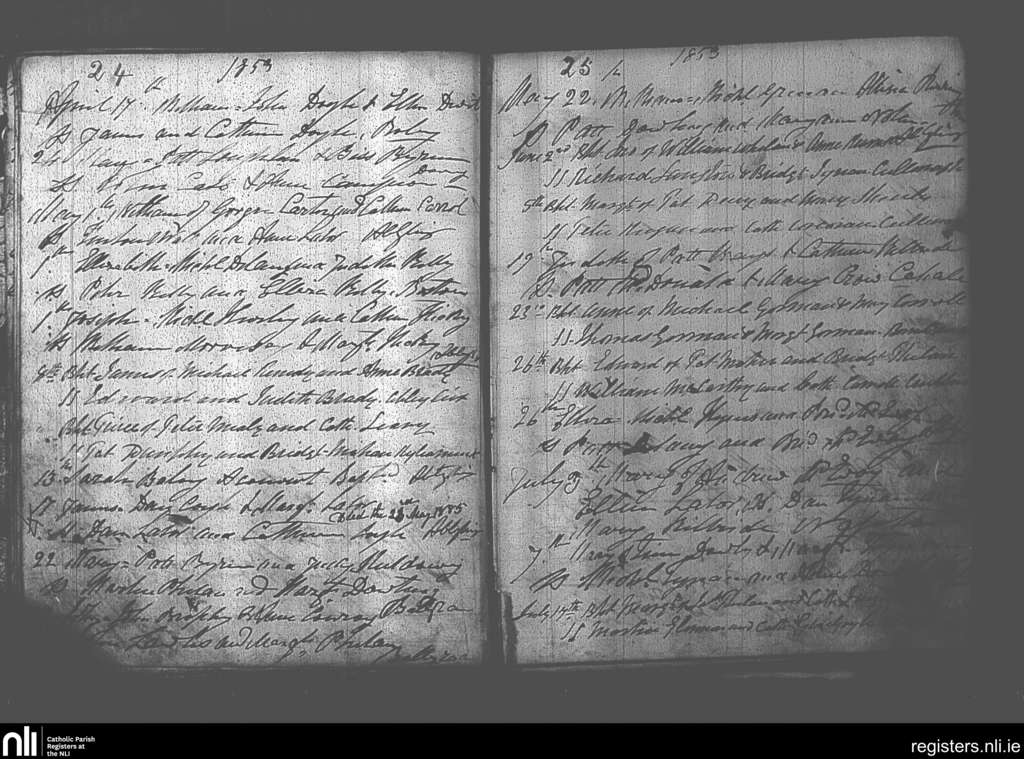 Abbeyleix and Ballyroan; County of Kilkenny, Laois; Diocese of Kildare and Leighlin. Baptisms, Apr. 1853 to July 1853