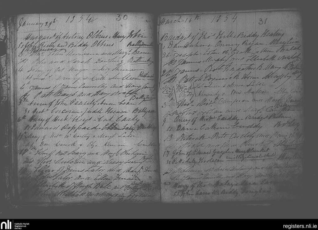 Abbeyleix and Ballyroan; County of Kilkenny, Laois; Diocese of Kildare and Leighlin. Baptisms, Jan. 1854 to Apr. 1854