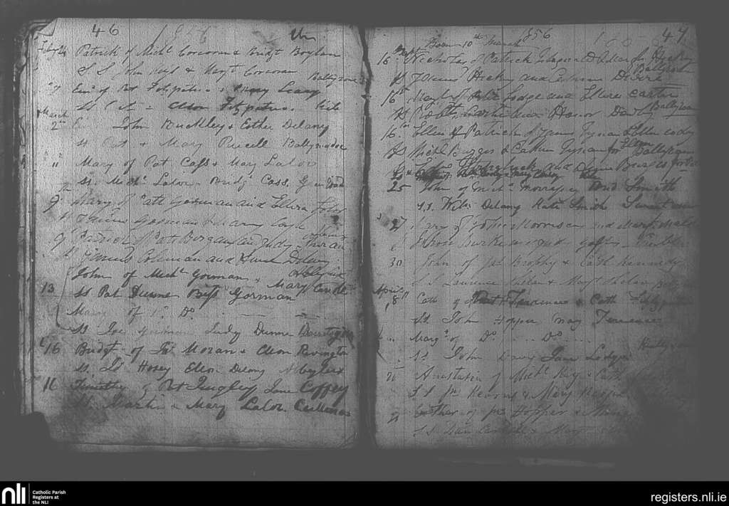 Abbeyleix and Ballyroan; County of Kilkenny, Laois; Diocese of Kildare and Leighlin. Baptisms, Feb. 1856 to Apr. 1856