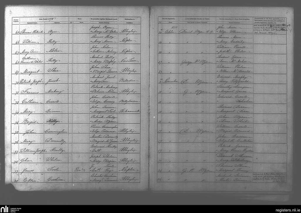 Abbeyleix and Ballyroan; County of Kilkenny, Laois; Diocese of Kildare and Leighlin. Baptisms, Oct. 1878 to Nov. 1878