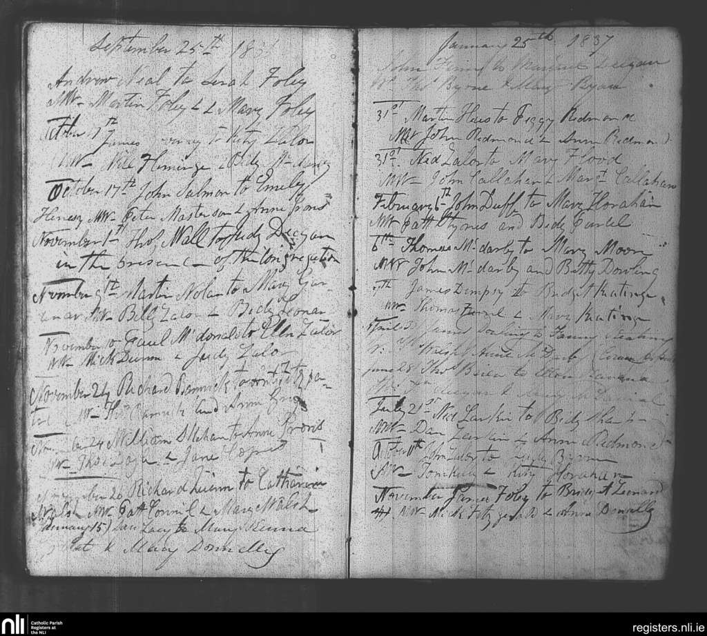 Arles; County of Laois; Diocese of Kildare and Leighlin. Marriages, Sep. 1836 to Nov. 1837