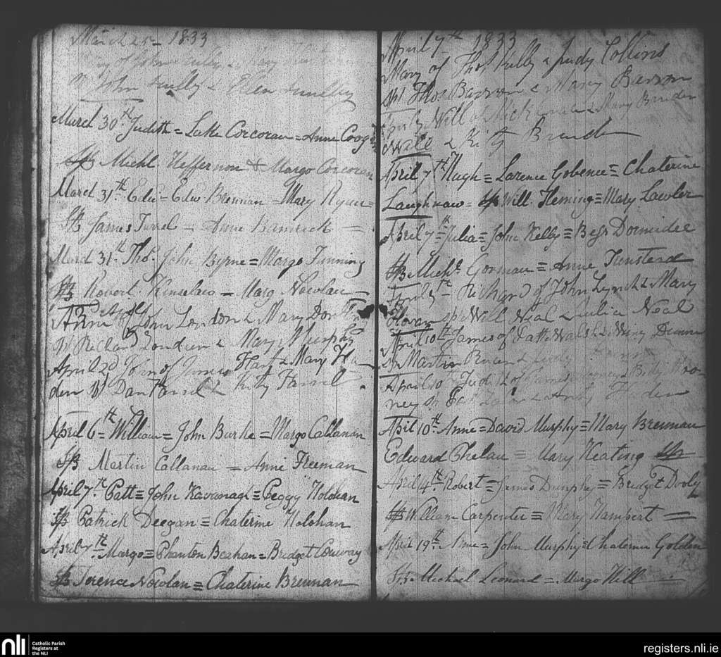 Arles; County of Laois; Diocese of Kildare and Leighlin. Baptisms, Mar. 1833 to Apr. 1833