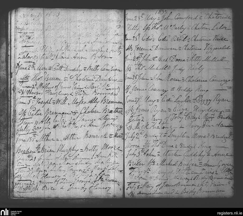 Arles; County of Laois; Diocese of Kildare and Leighlin. Baptisms, May 1833 to July 1833