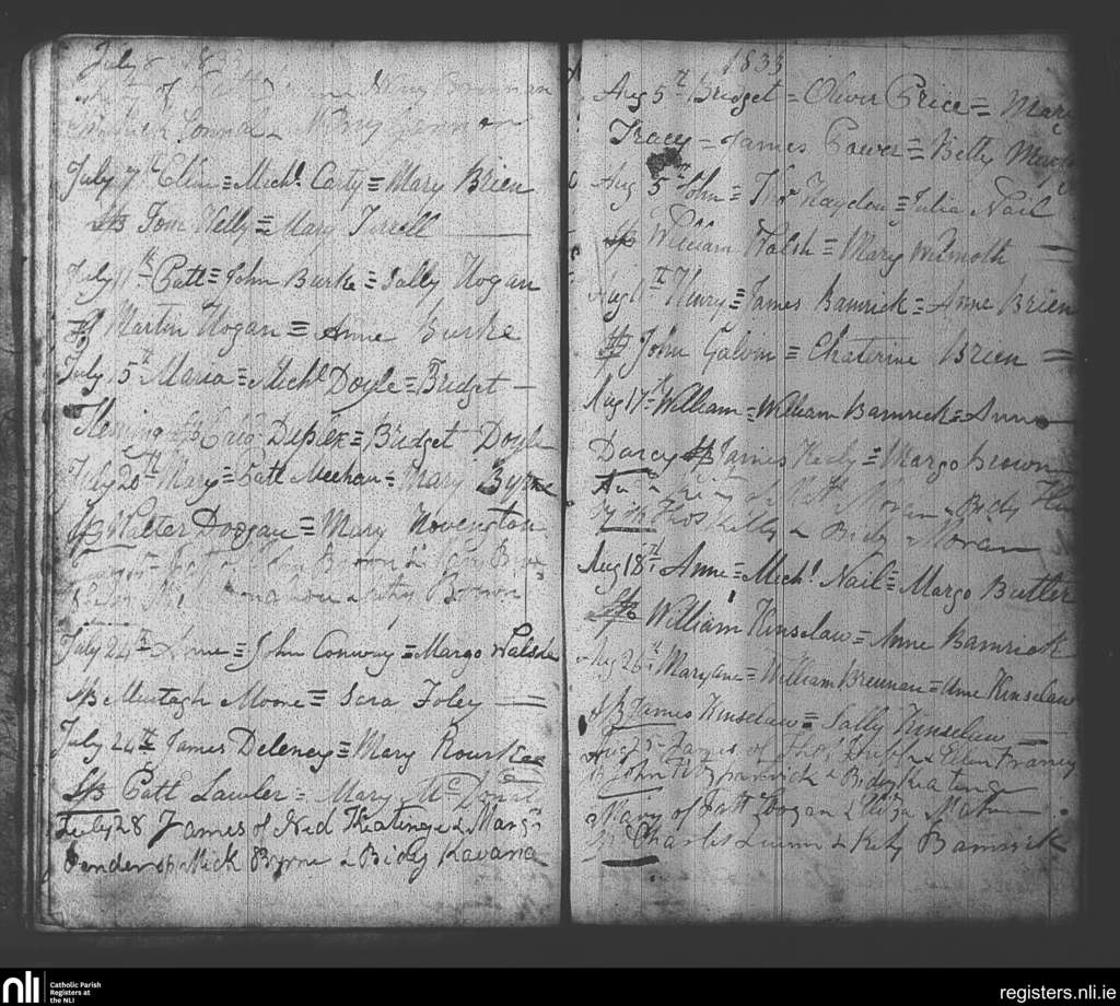 Arles; County of Laois; Diocese of Kildare and Leighlin. Baptisms, July 1833 to Aug. 1833