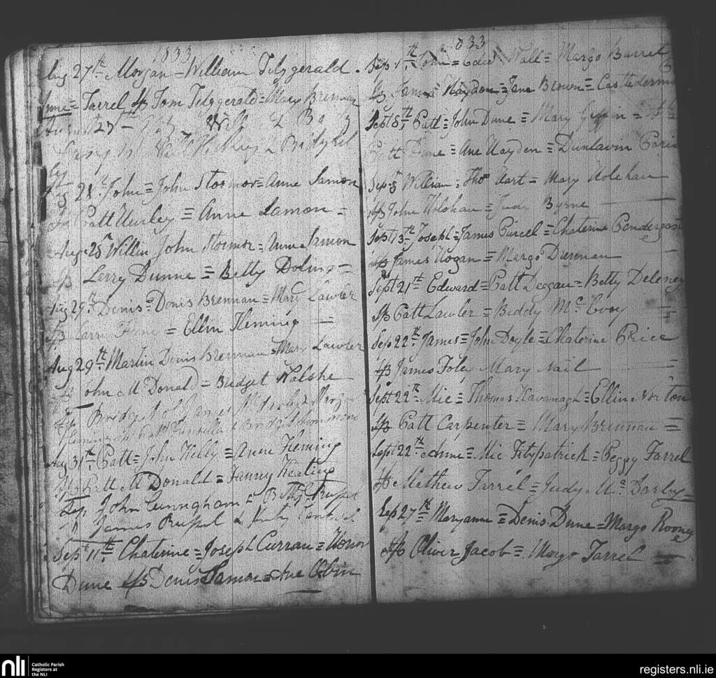 Arles; County of Laois; Diocese of Kildare and Leighlin. Baptisms, Aug. 1833 to Sep. 1833