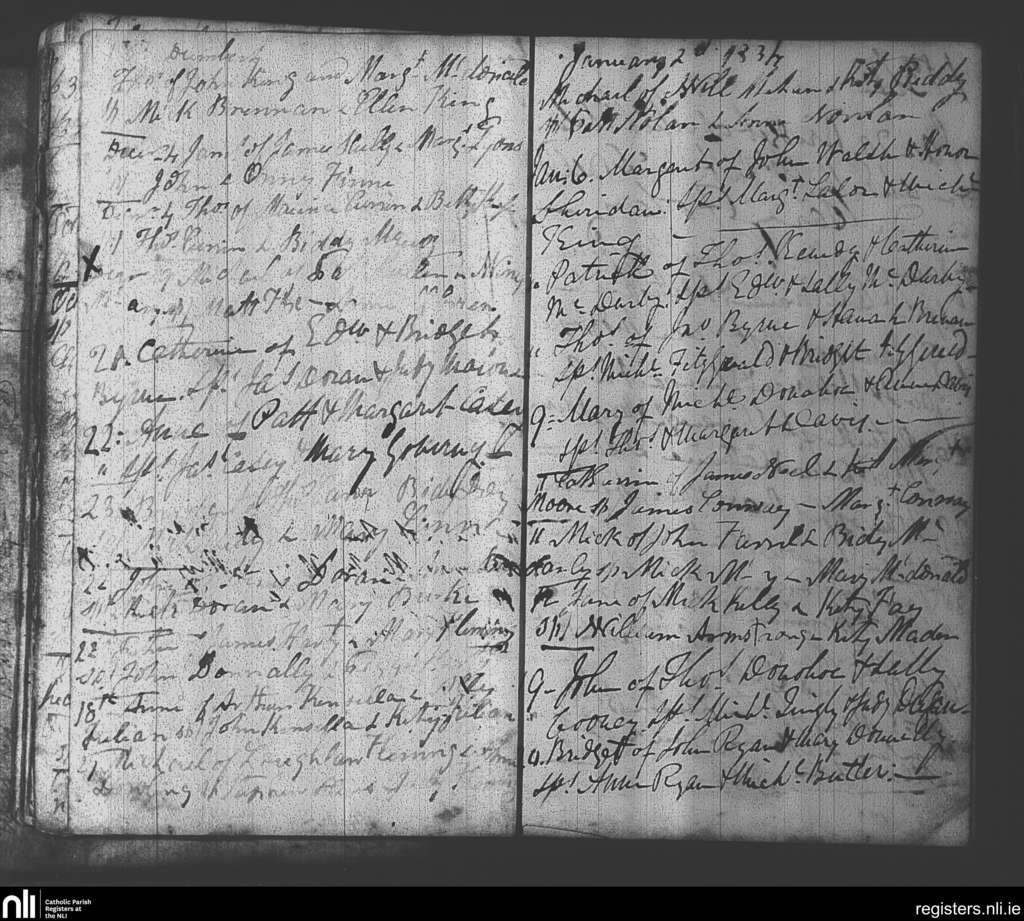 Arles; County of Laois; Diocese of Kildare and Leighlin. Baptisms, Dec. 1833 to Jan. 1834