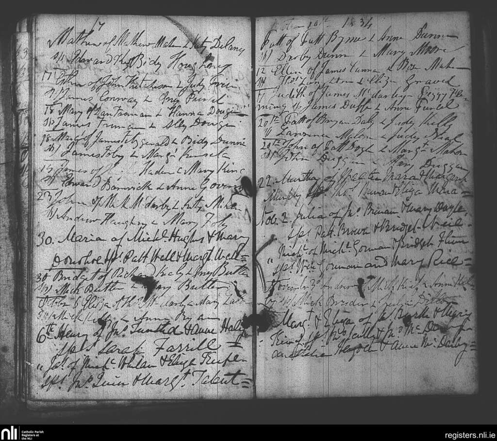 Arles; County of Laois; Diocese of Kildare and Leighlin. Baptisms, Sep. 1834 to Nov. 1834