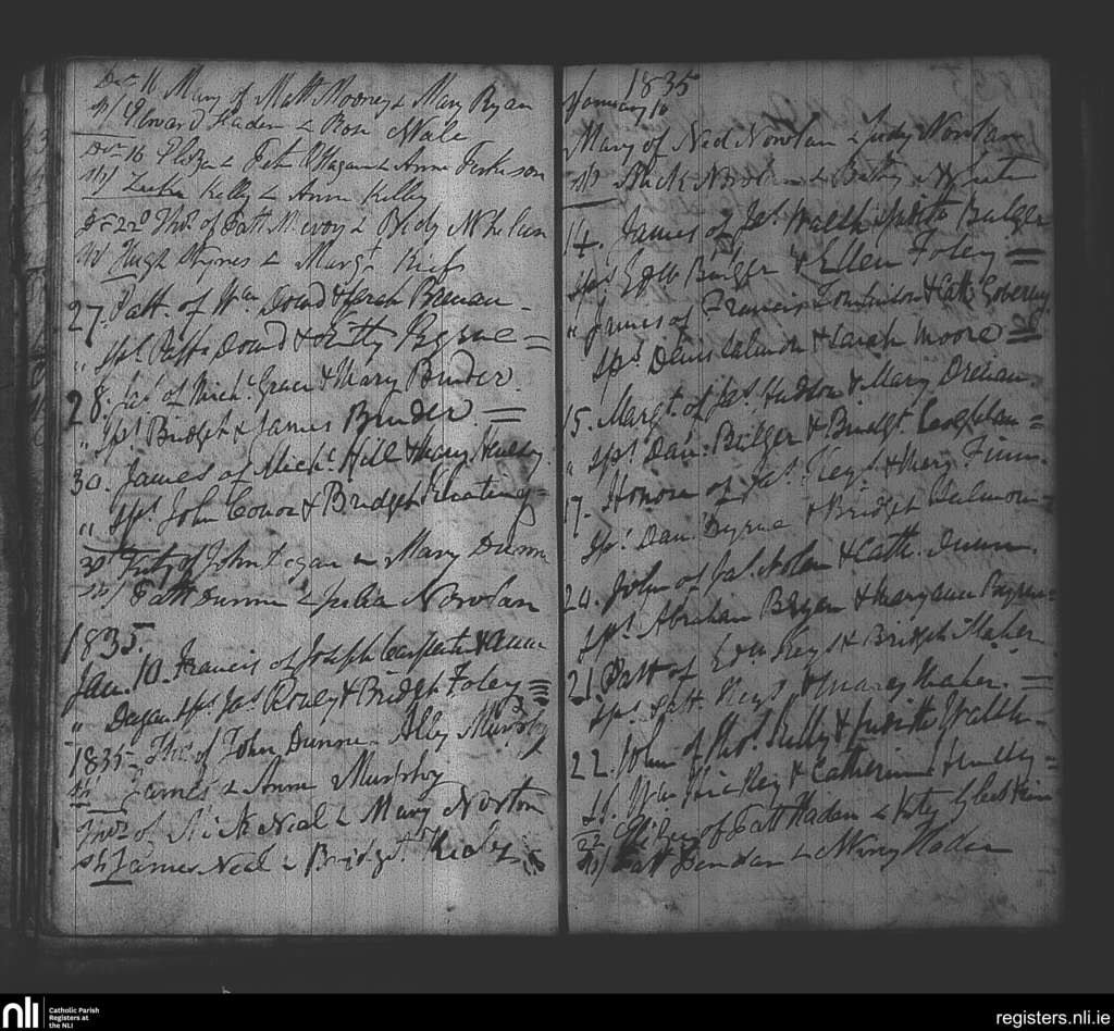 Arles; County of Laois; Diocese of Kildare and Leighlin. Baptisms, Dec. 1834 to Jan. 1835
