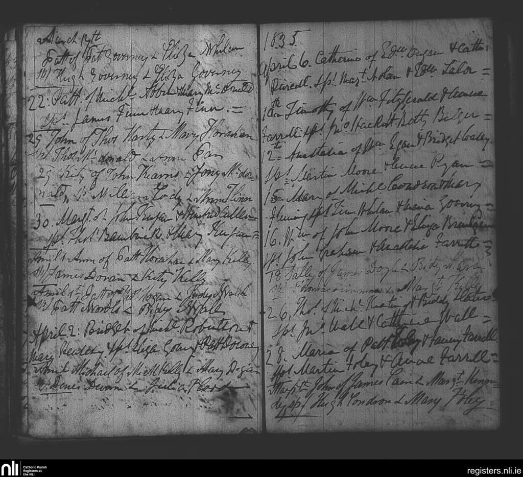 Arles; County of Laois; Diocese of Kildare and Leighlin. Baptisms, Mar. 1835 to May 1835