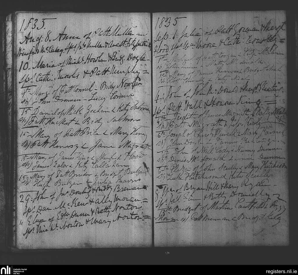 Arles; County of Laois; Diocese of Kildare and Leighlin. Baptisms, Aug. 1835 to Sep. 1835