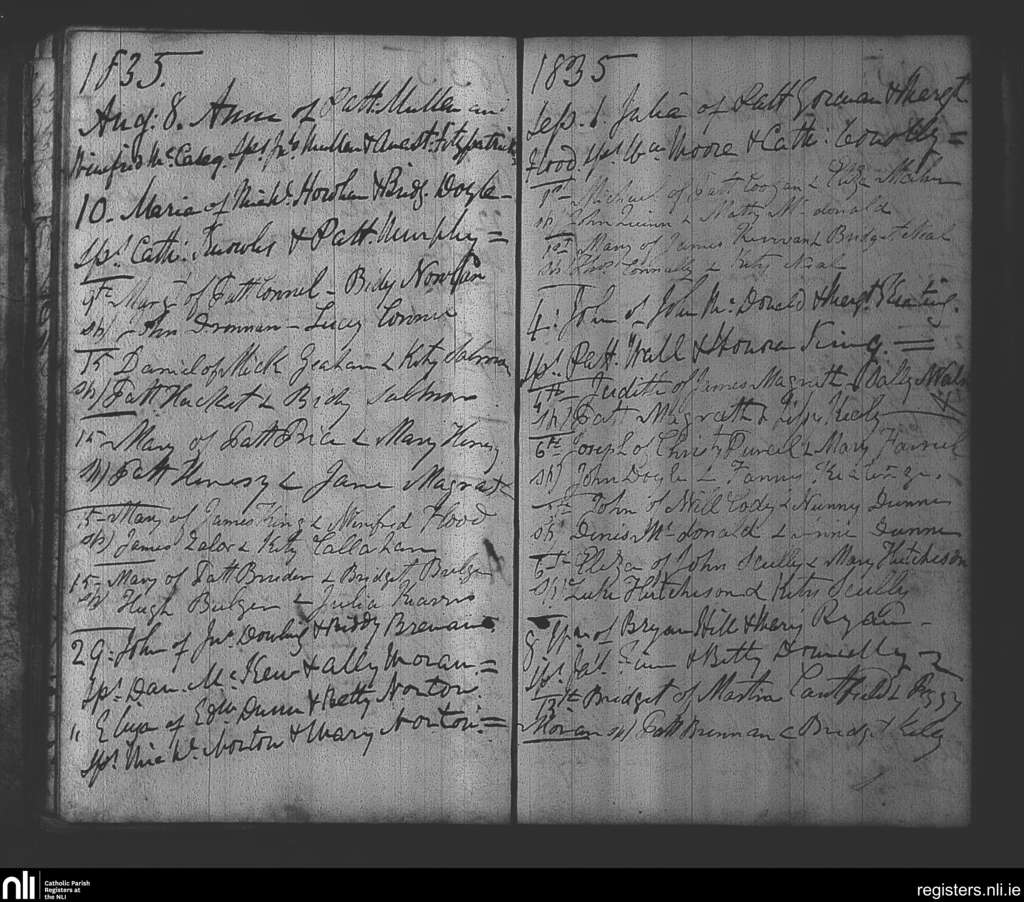Arles; County of Laois; Diocese of Kildare and Leighlin. Baptisms, Aug. 1835 to Sep. 1835