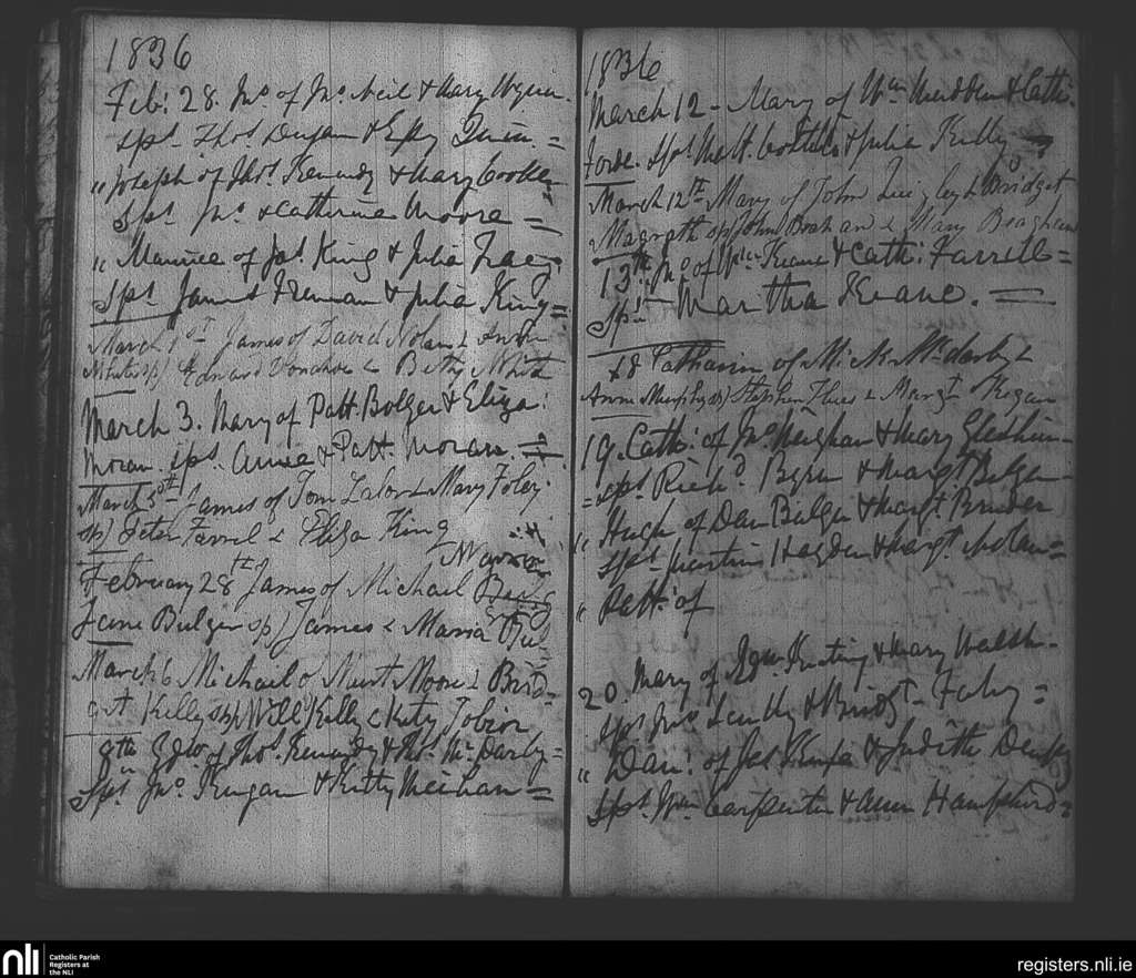 Arles; County of Laois; Diocese of Kildare and Leighlin. Baptisms, Feb. 1836 to Mar. 1836