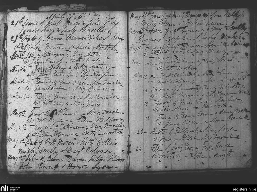 Arles; County of Laois; Diocese of Kildare and Leighlin. Baptisms, Apr. 1844 to May 1844