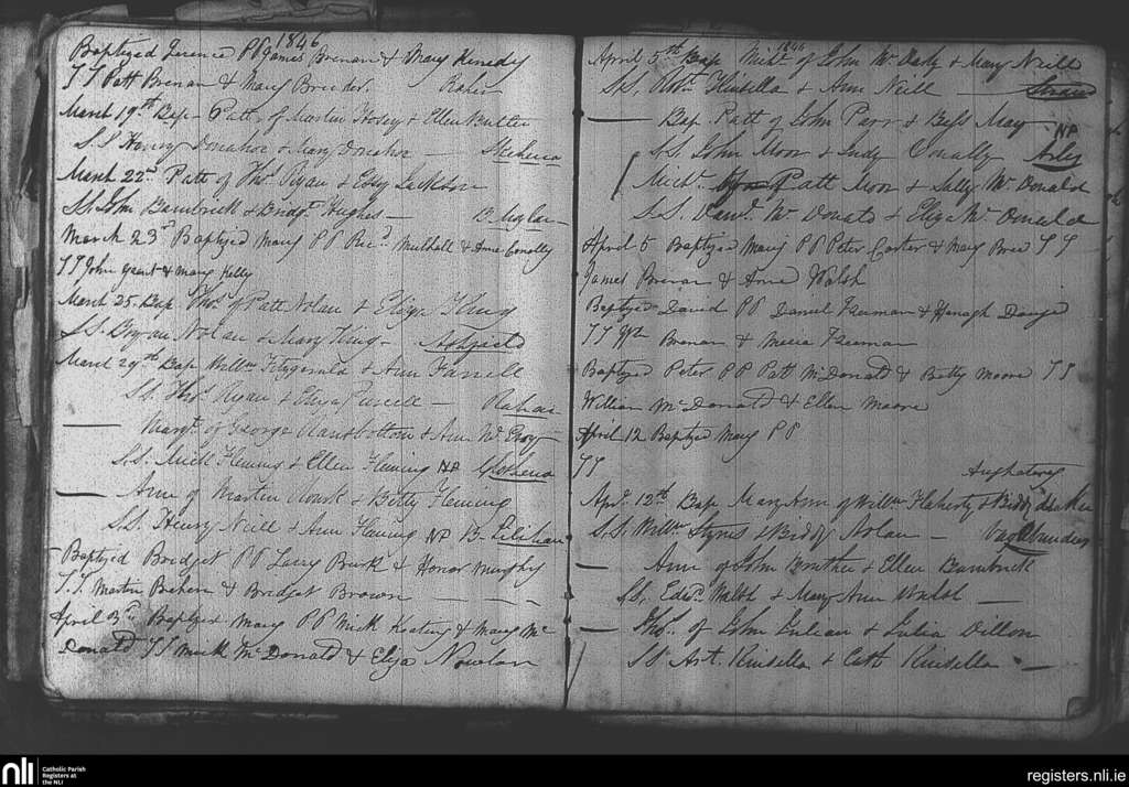Arles; County of Laois; Diocese of Kildare and Leighlin. Baptisms, Mar. 1846 to Apr. 1846