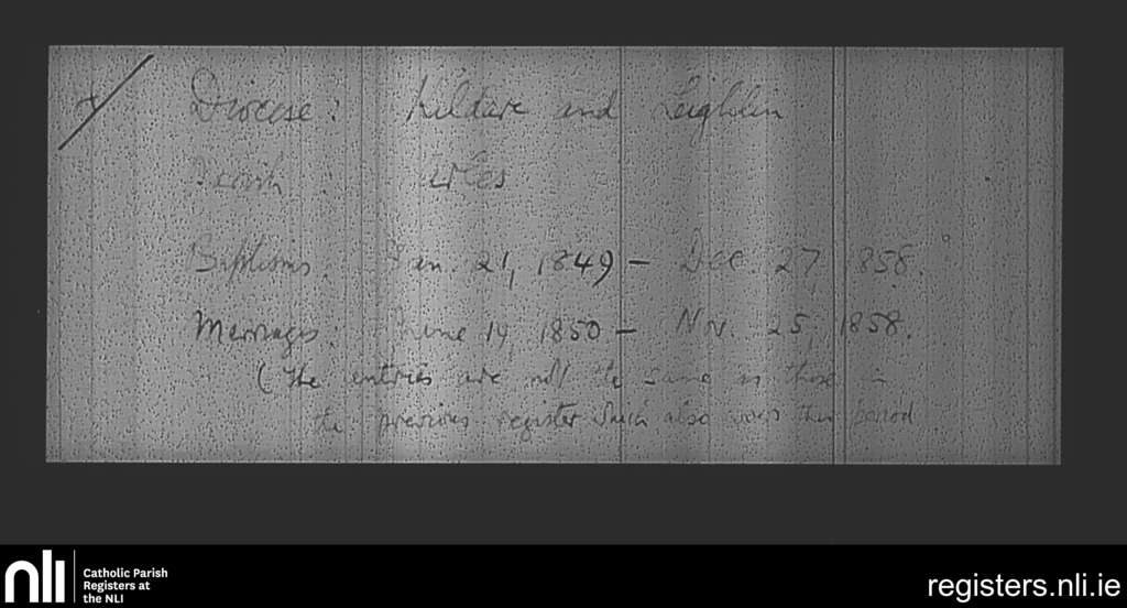 Arles; County of Laois; Diocese of Kildare and Leighlin. Baptisms, Marriages