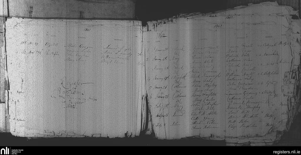 Arles; County of Laois; Diocese of Kildare and Leighlin. Baptisms, Dec. 1861 to Feb. 1862