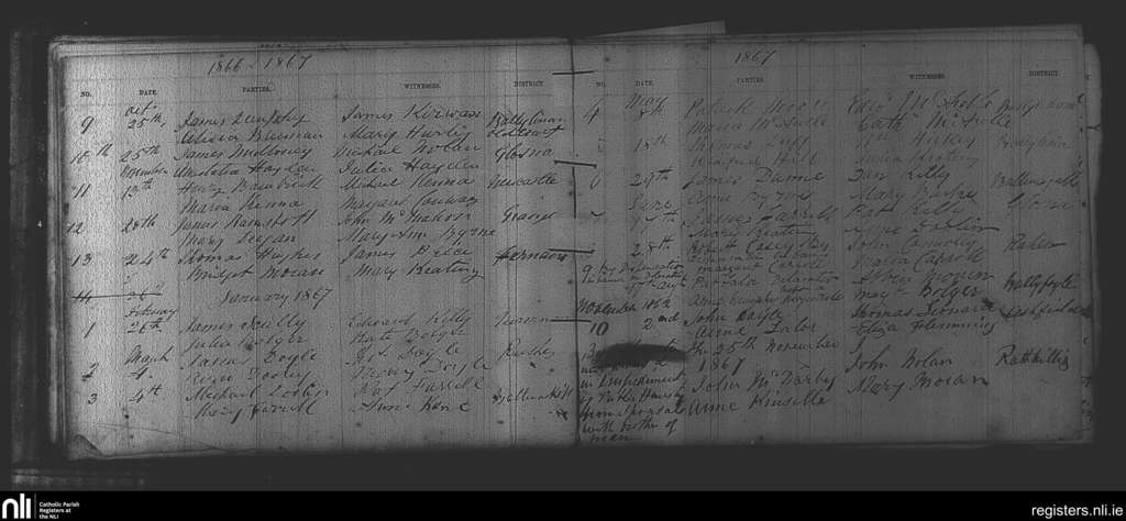 Arles; County of Laois; Diocese of Kildare and Leighlin. Marriages, Jan. 1861 to Aug. 1867