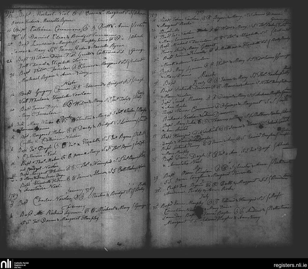 Ballon and Rathoe; County of Carlow; Diocese of Kildare and Leighlin. Baptisms, Oct. 1788 to July 1789