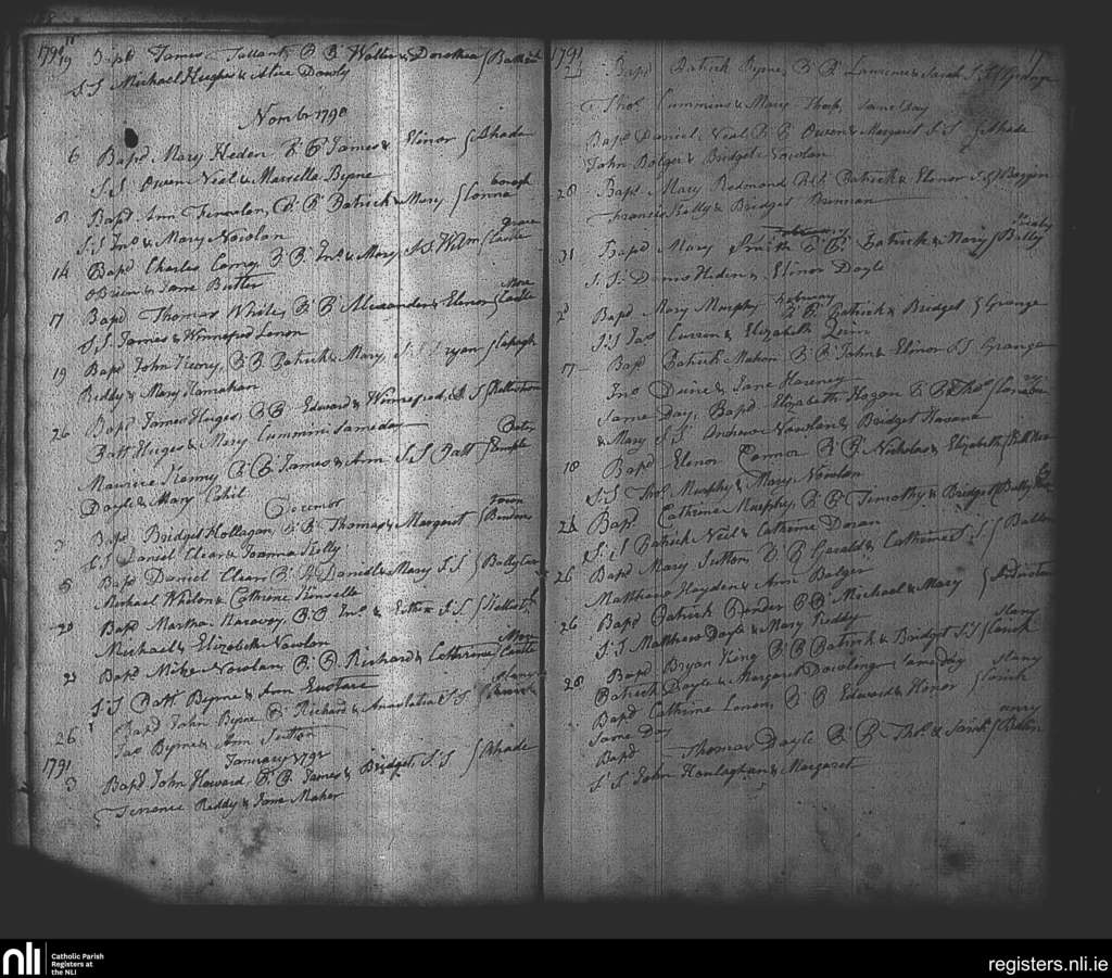 Ballon and Rathoe; County of Carlow; Diocese of Kildare and Leighlin. Baptisms, Oct. 1790 to Feb. 1791