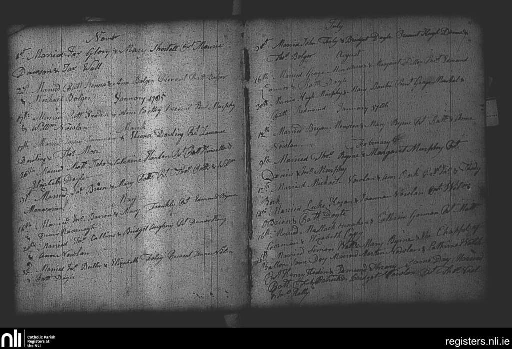 Ballon and Rathoe; County of Carlow; Diocese of Kildare and Leighlin. Marriages, Nov. 1784 to Feb. 1786