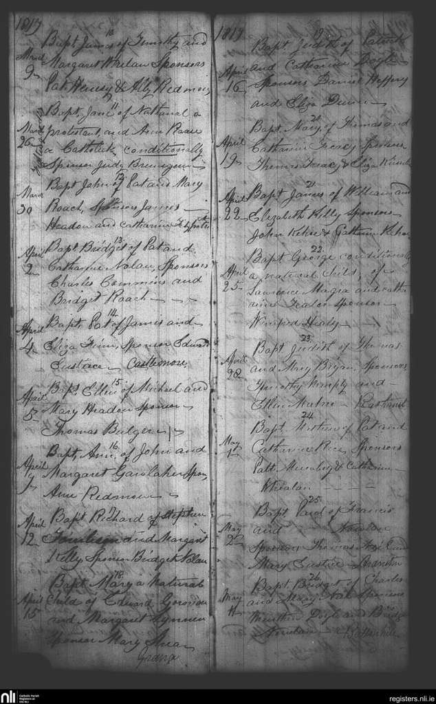 Ballon and Rathoe; County of Carlow; Diocese of Kildare and Leighlin. Baptisms, Mar. 1817 to May 1817