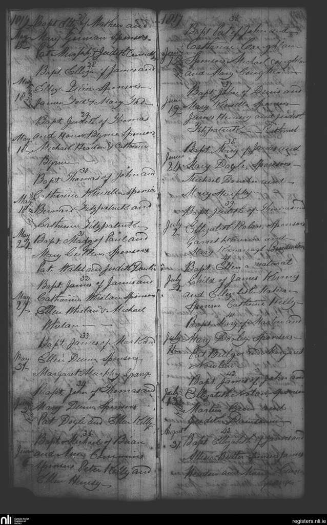 Ballon and Rathoe; County of Carlow; Diocese of Kildare and Leighlin. Baptisms, May 1817 to Aug. 1817