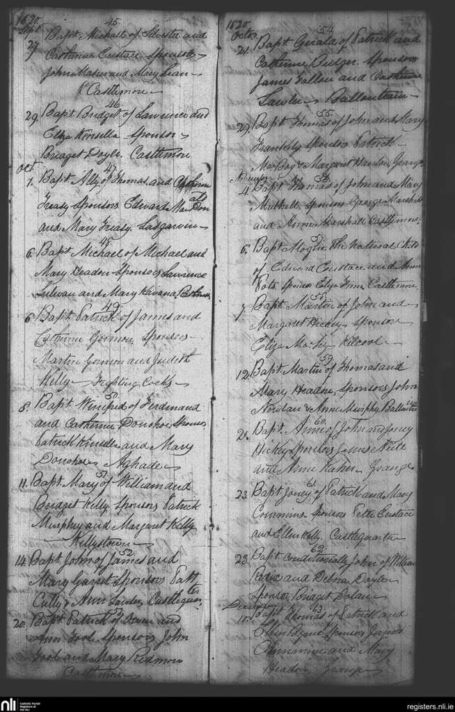 Ballon and Rathoe; County of Carlow; Diocese of Kildare and Leighlin. Baptisms, Sep. 1820 to Dec. 1820