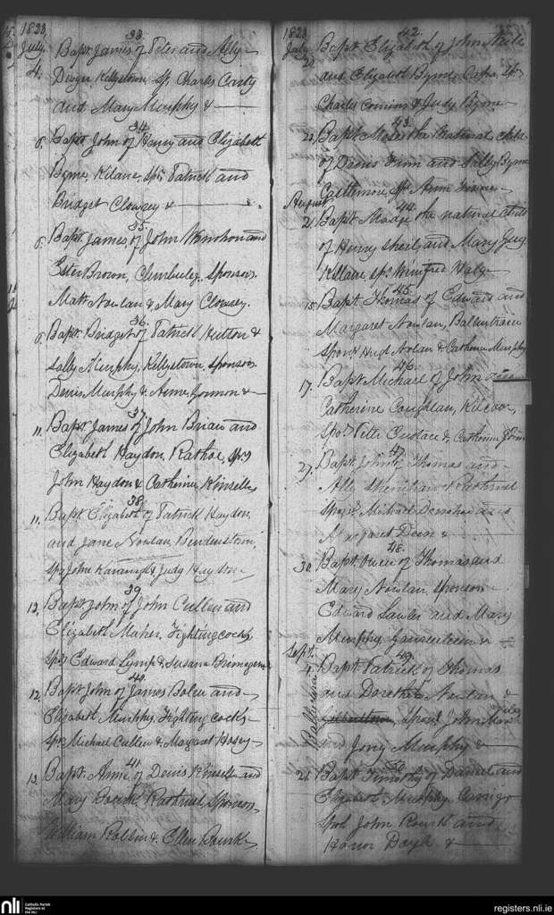 Ballon and Rathoe; County of Carlow; Diocese of Kildare and Leighlin. Baptisms, July 1823 to Sep. 1823