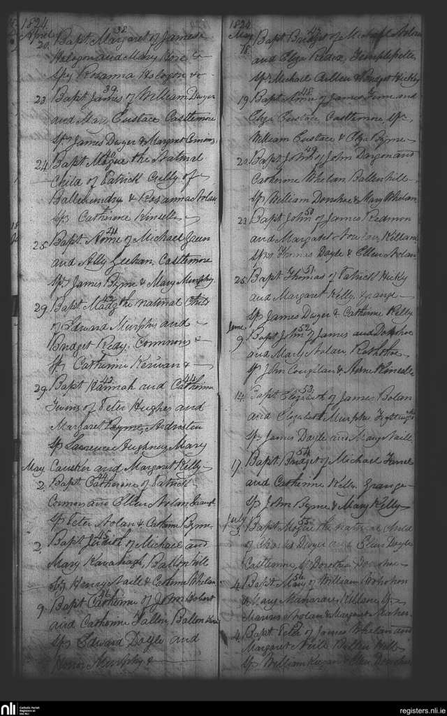 Ballon and Rathoe; County of Carlow; Diocese of Kildare and Leighlin. Baptisms, Apr. 1824 to July 1824