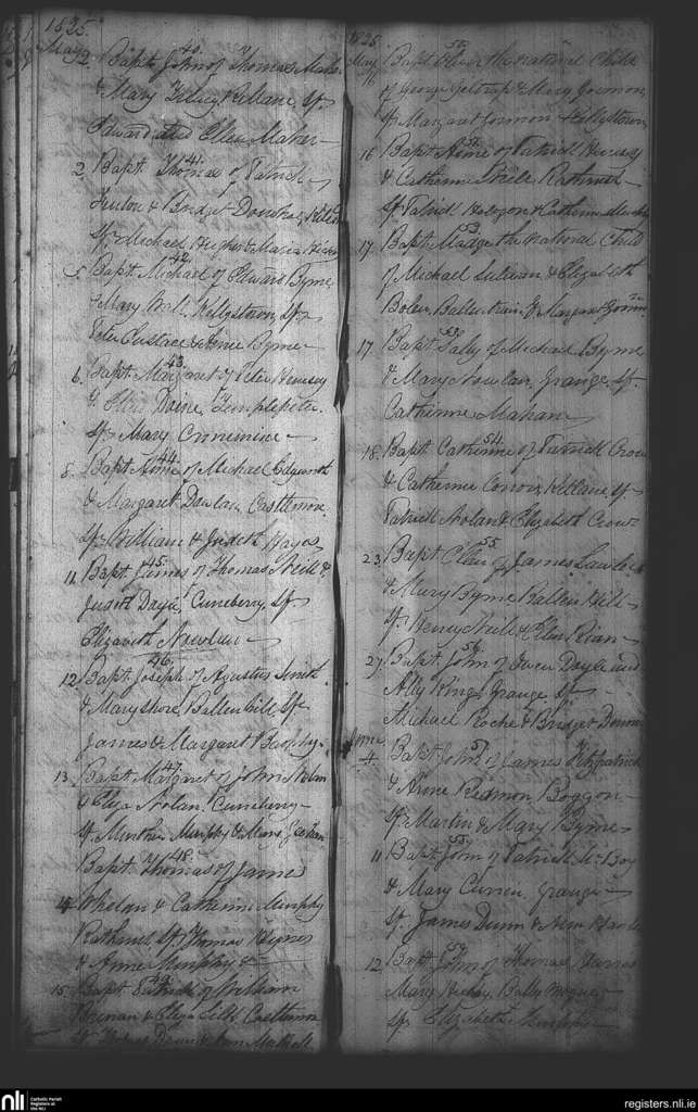 Ballon and Rathoe; County of Carlow; Diocese of Kildare and Leighlin. Baptisms, May 1825 to June 1825