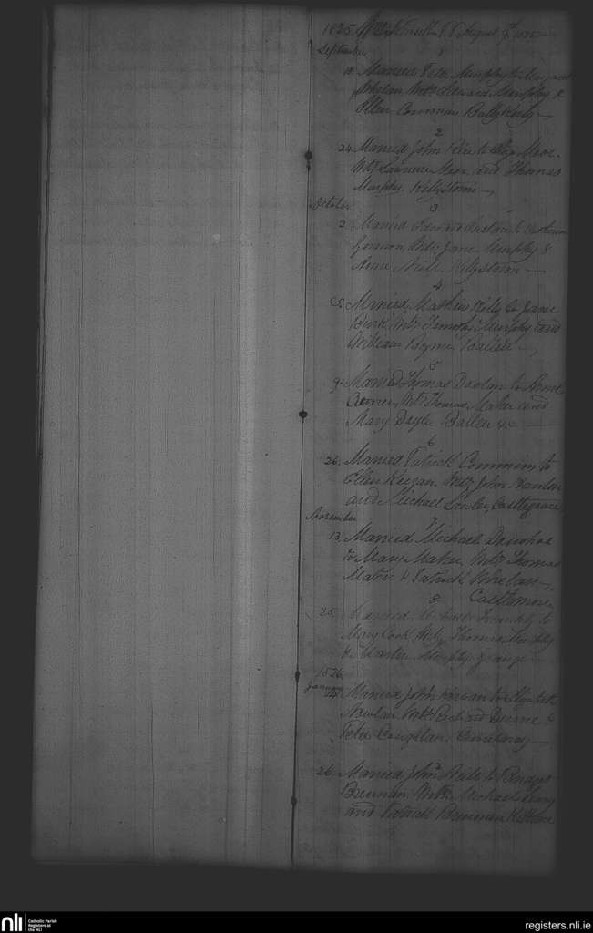 Ballon and Rathoe; County of Carlow; Diocese of Kildare and Leighlin. Marriages, Sep. 1825 to Jan. 1826