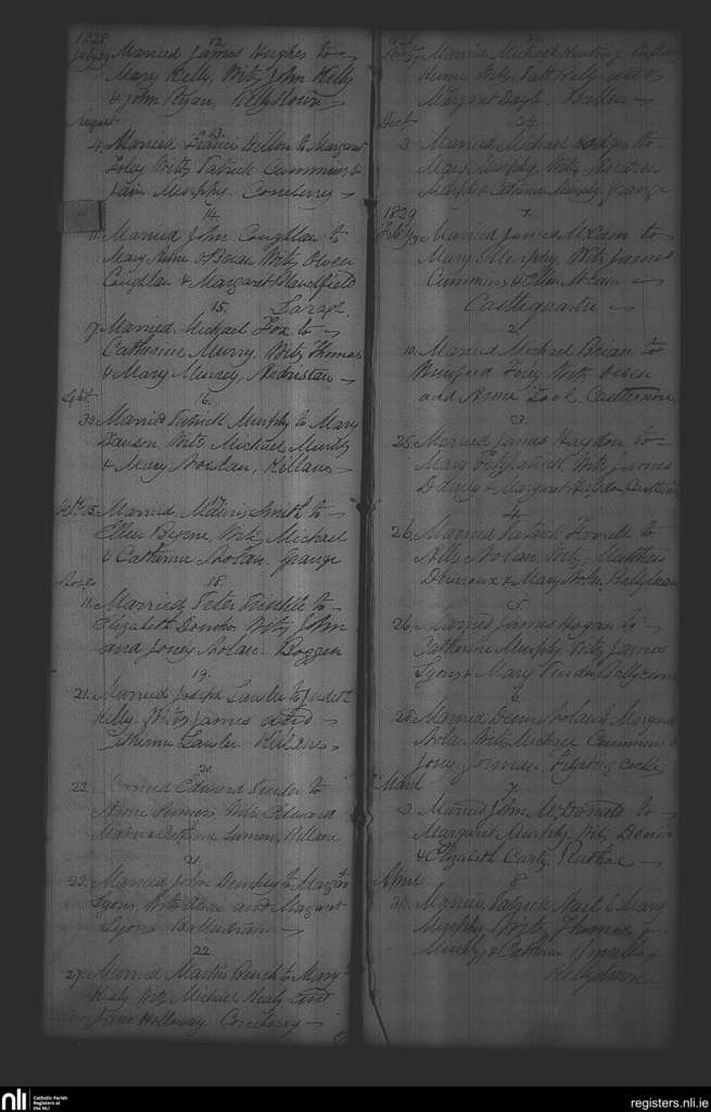 Ballon and Rathoe; County of Carlow; Diocese of Kildare and Leighlin. Marriages, July 1828 to Apr. 1829