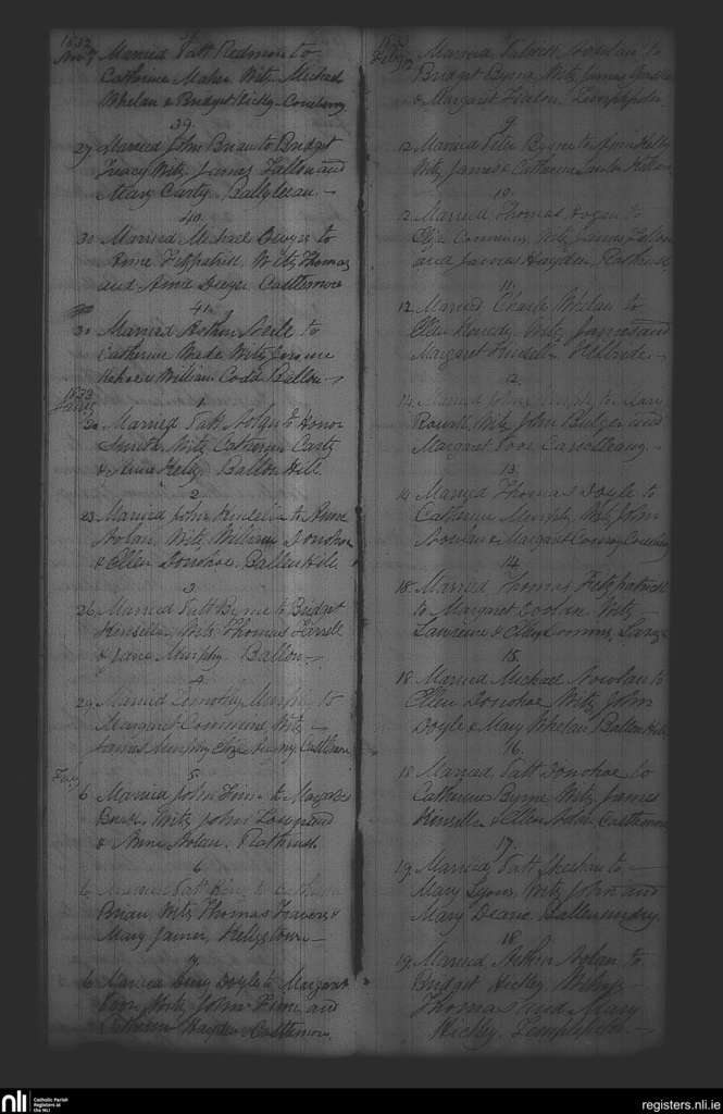 Ballon and Rathoe; County of Carlow; Diocese of Kildare and Leighlin. Marriages, Nov. 1832 to Feb. 1833