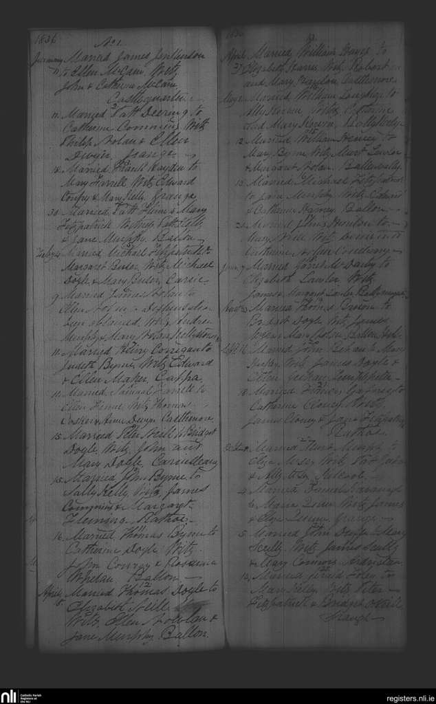Ballon and Rathoe; County of Carlow; Diocese of Kildare and Leighlin. Marriages, Jan. 1836 to Oct. 1836