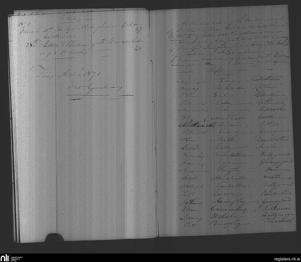Ballon and Rathoe; County of Carlow; Diocese of Kildare and Leighlin. Deaths, Confirmations, Dec. 1871 to Oct. 1880