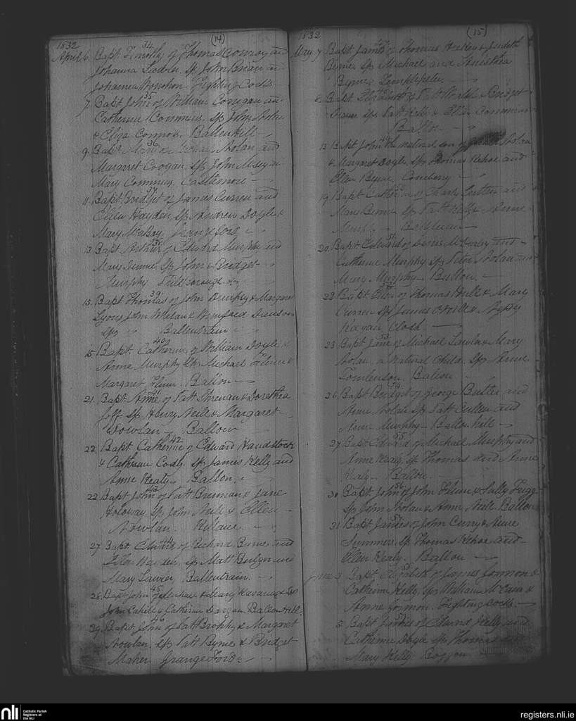 Ballon and Rathoe; County of Carlow; Diocese of Kildare and Leighlin. Baptisms, Apr. 1832 to June 1832