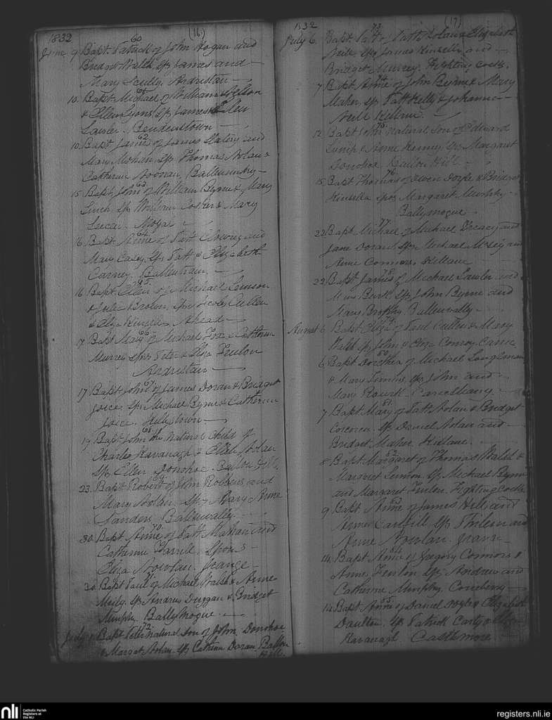 Ballon and Rathoe; County of Carlow; Diocese of Kildare and Leighlin. Baptisms, June 1832 to Aug. 1832