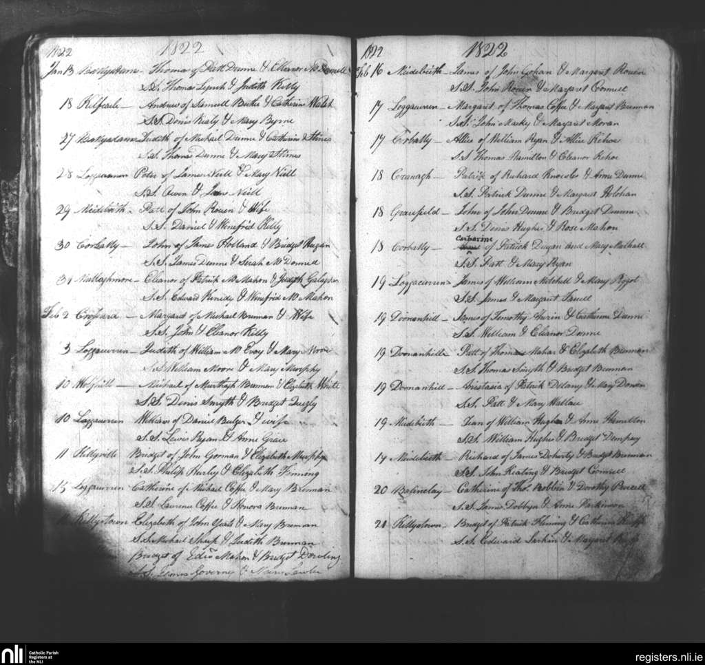Ballyadams; County of Laois; Diocese of Kildare and Leighlin. Baptisms, Jan. 1822 to Feb. 1822