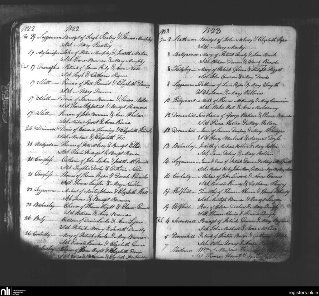 Ballyadams; County of Laois; Diocese of Kildare and Leighlin. Baptisms, Nov. 1822 to Feb. 1823