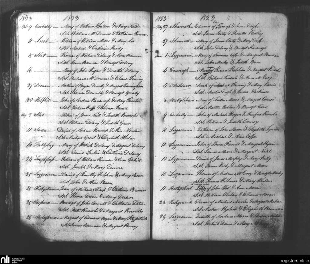 Ballyadams; County of Laois; Diocese of Kildare and Leighlin. Baptisms, Apr. 1823 to June 1823