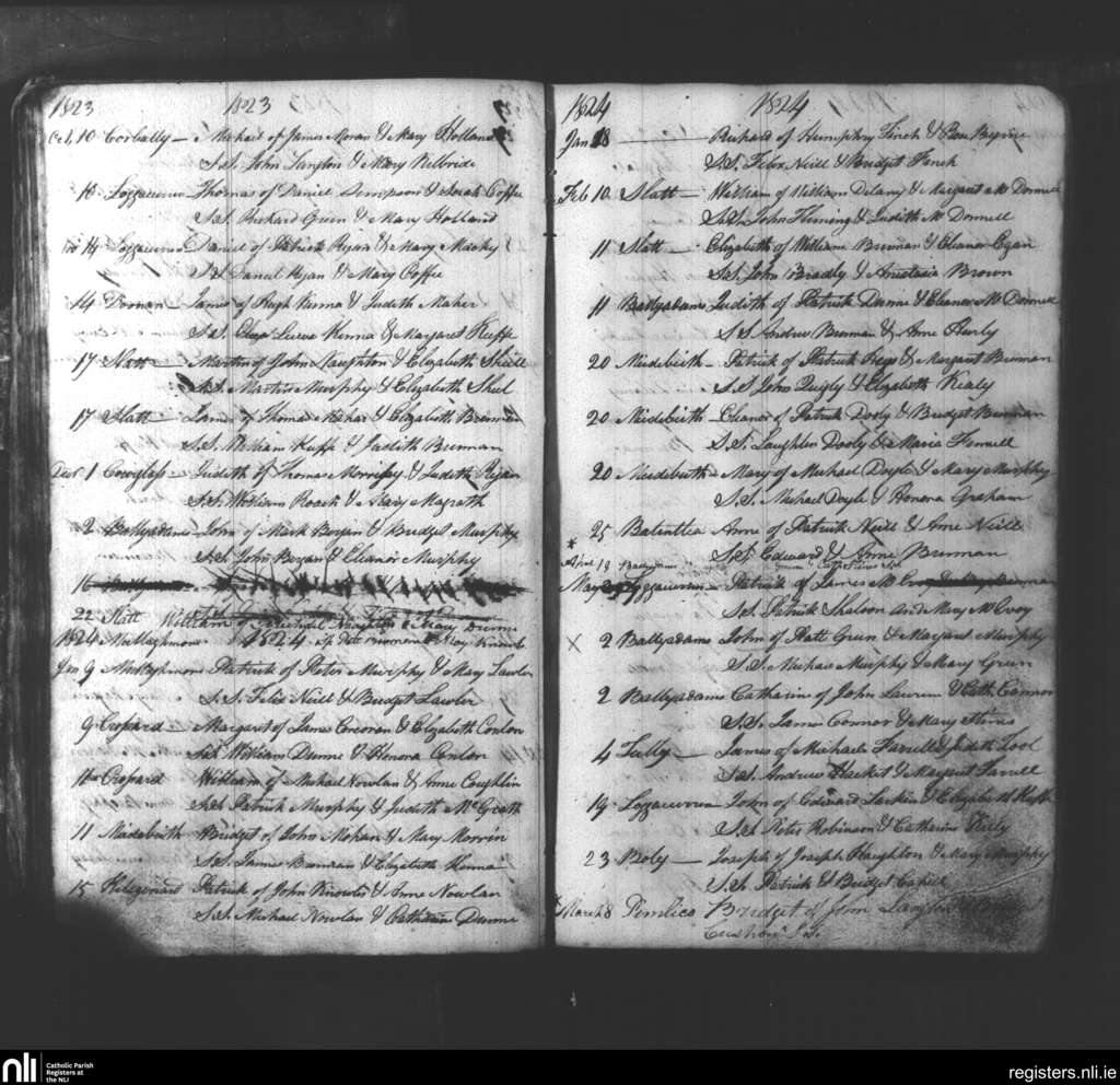 Ballyadams; County of Laois; Diocese of Kildare and Leighlin. Baptisms, Oct. 1823 to May 1824
