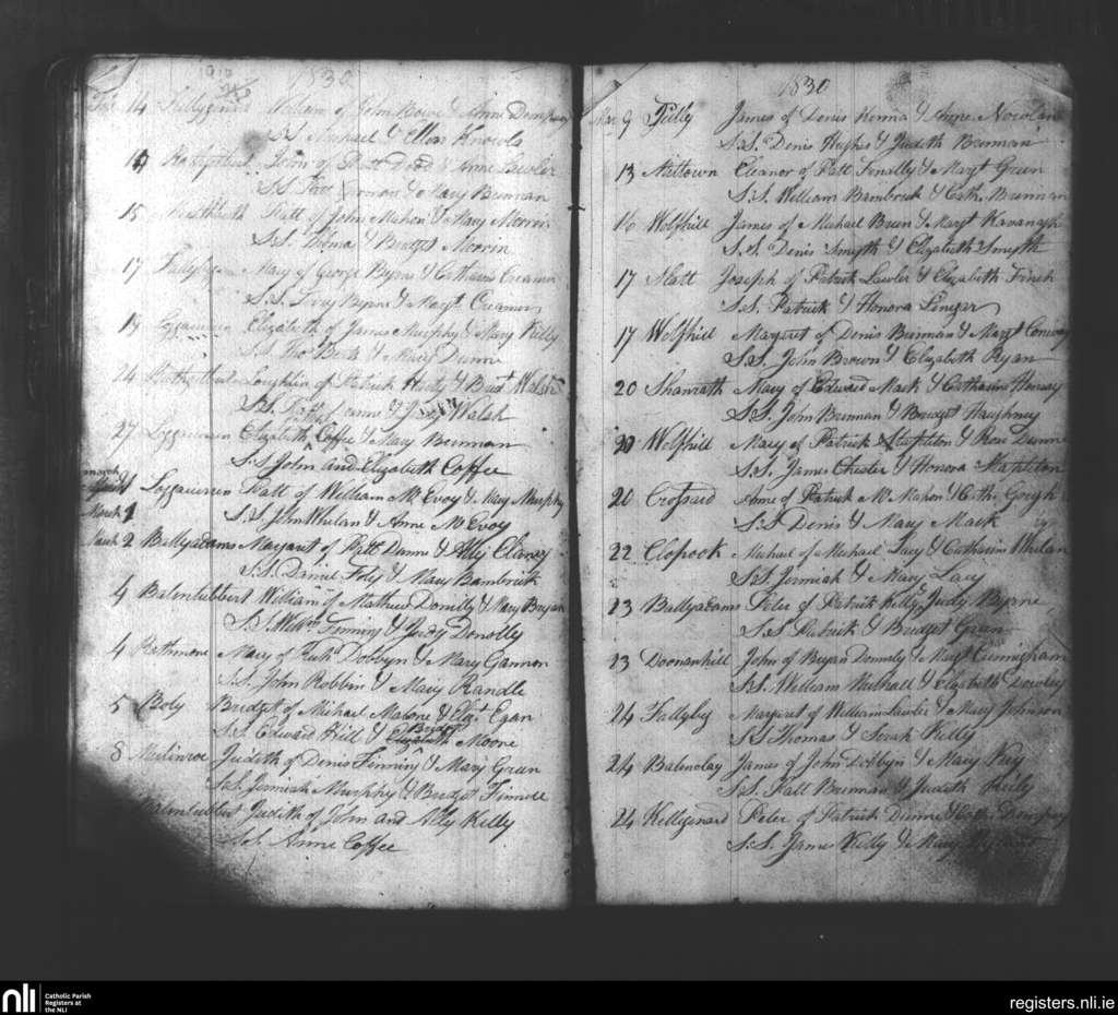 Ballyadams; County of Laois; Diocese of Kildare and Leighlin. Baptisms, Feb. 1830 to Mar. 1830
