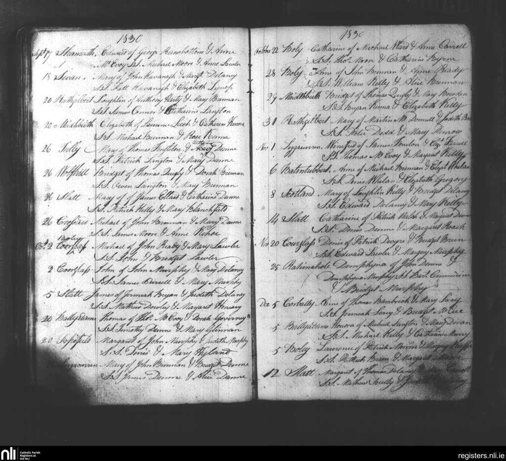 Ballyadams; County of Laois; Diocese of Kildare and Leighlin. Baptisms, Sep. 1830 to Dec. 1830