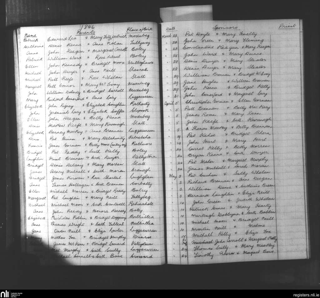 Ballyadams; County of Laois; Diocese of Kildare and Leighlin. Baptisms, Mar. 1846 to May 1846