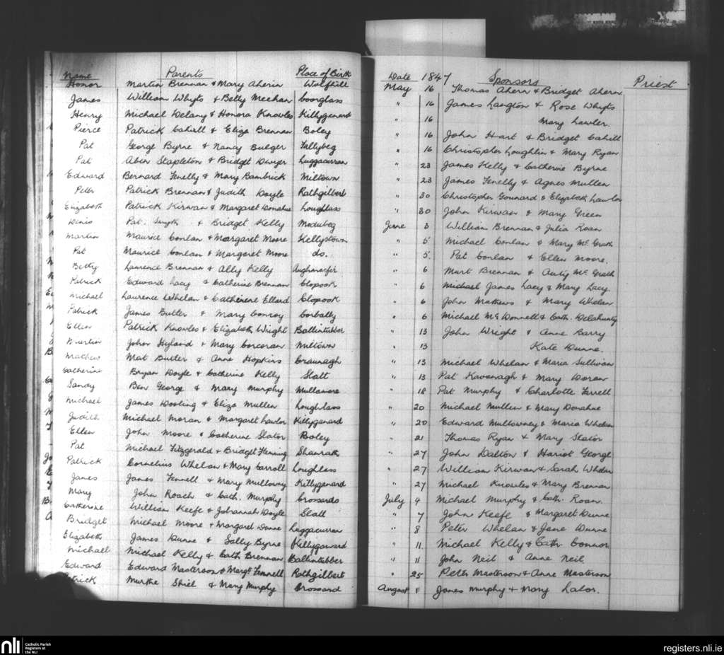 Ballyadams; County of Laois; Diocese of Kildare and Leighlin. Baptisms, May 1847 to Aug. 1847