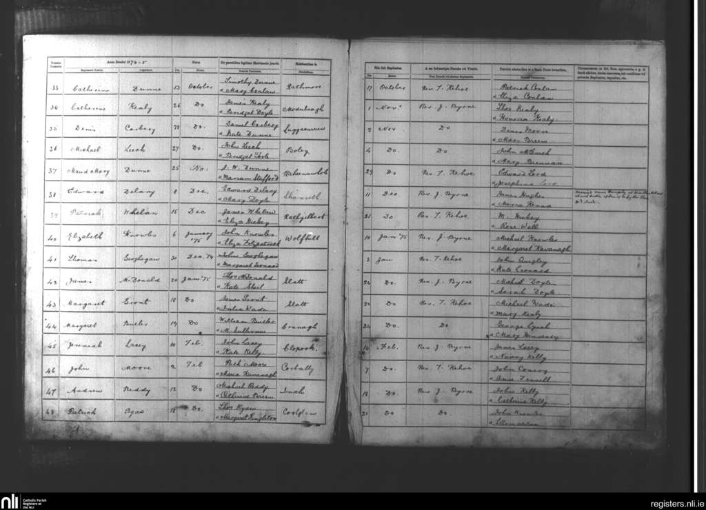 Ballyadams; County of Laois; Diocese of Kildare and Leighlin. Baptisms, Oct. 1874 to Feb. 1875