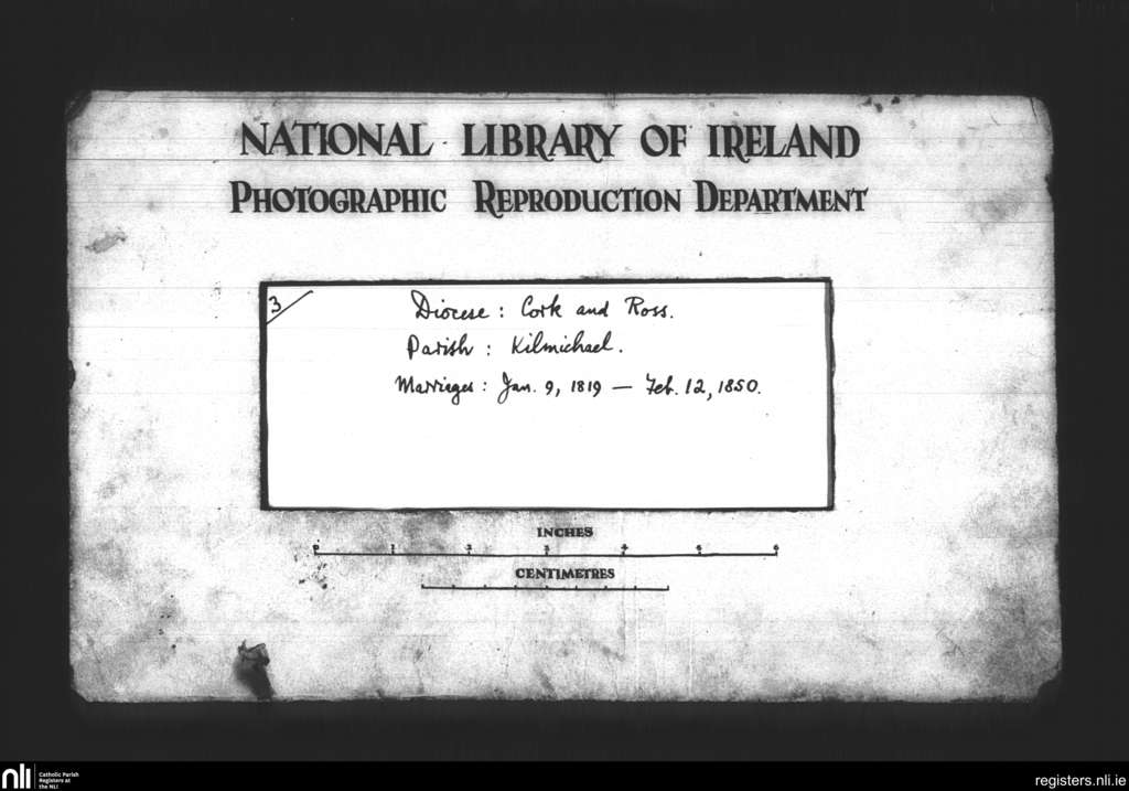 Kilmichael; County of Cork; Diocese of Cork and Ross. Marriages