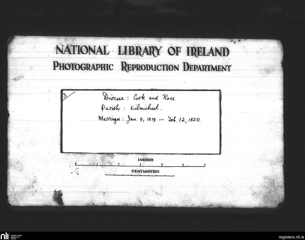 Kilmichael; County of Cork; Diocese of Cork and Ross. Marriages