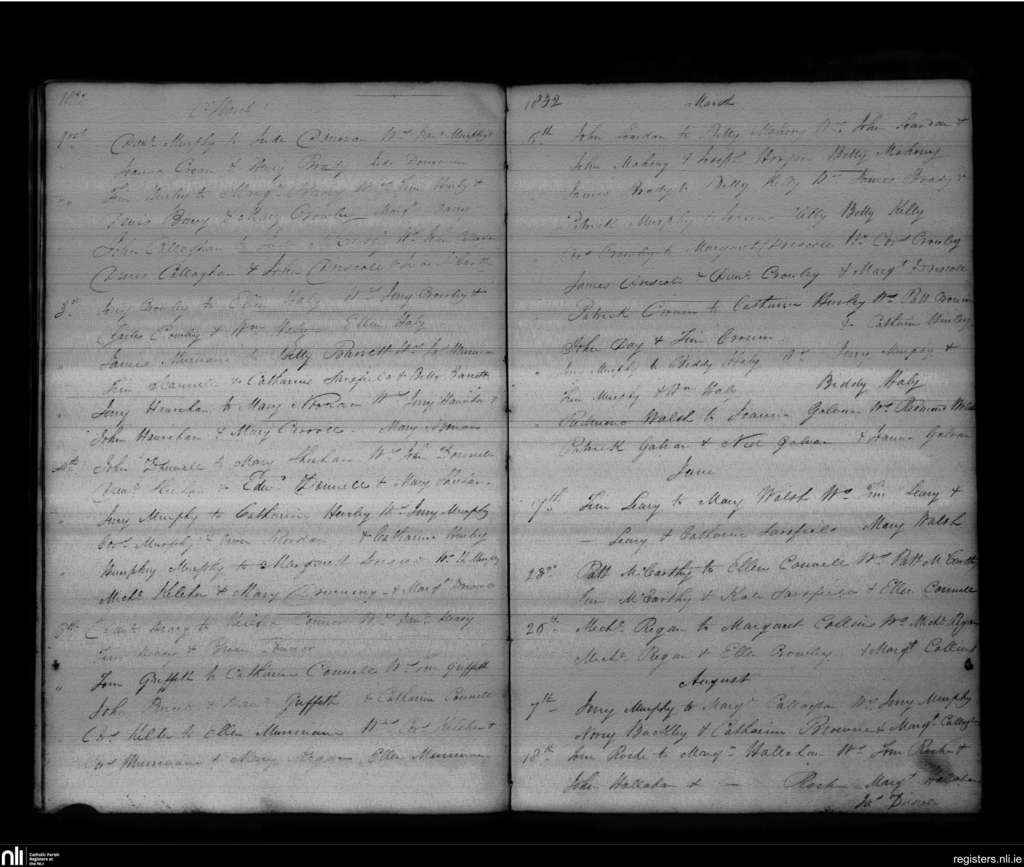 Kilmichael; County of Cork; Diocese of Cork and Ross. Marriages, Mar. 1832 to Aug. 1832
