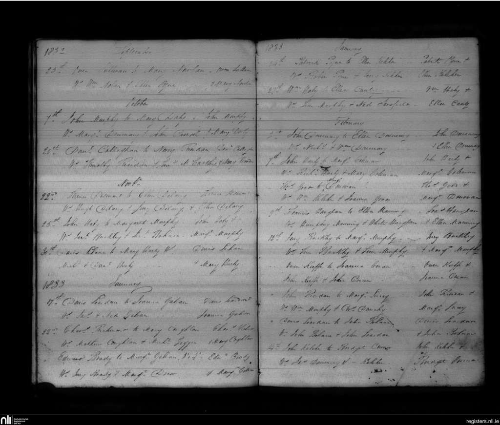 Kilmichael; County of Cork; Diocese of Cork and Ross. Marriages, Sep. 1832 to Feb. 1833